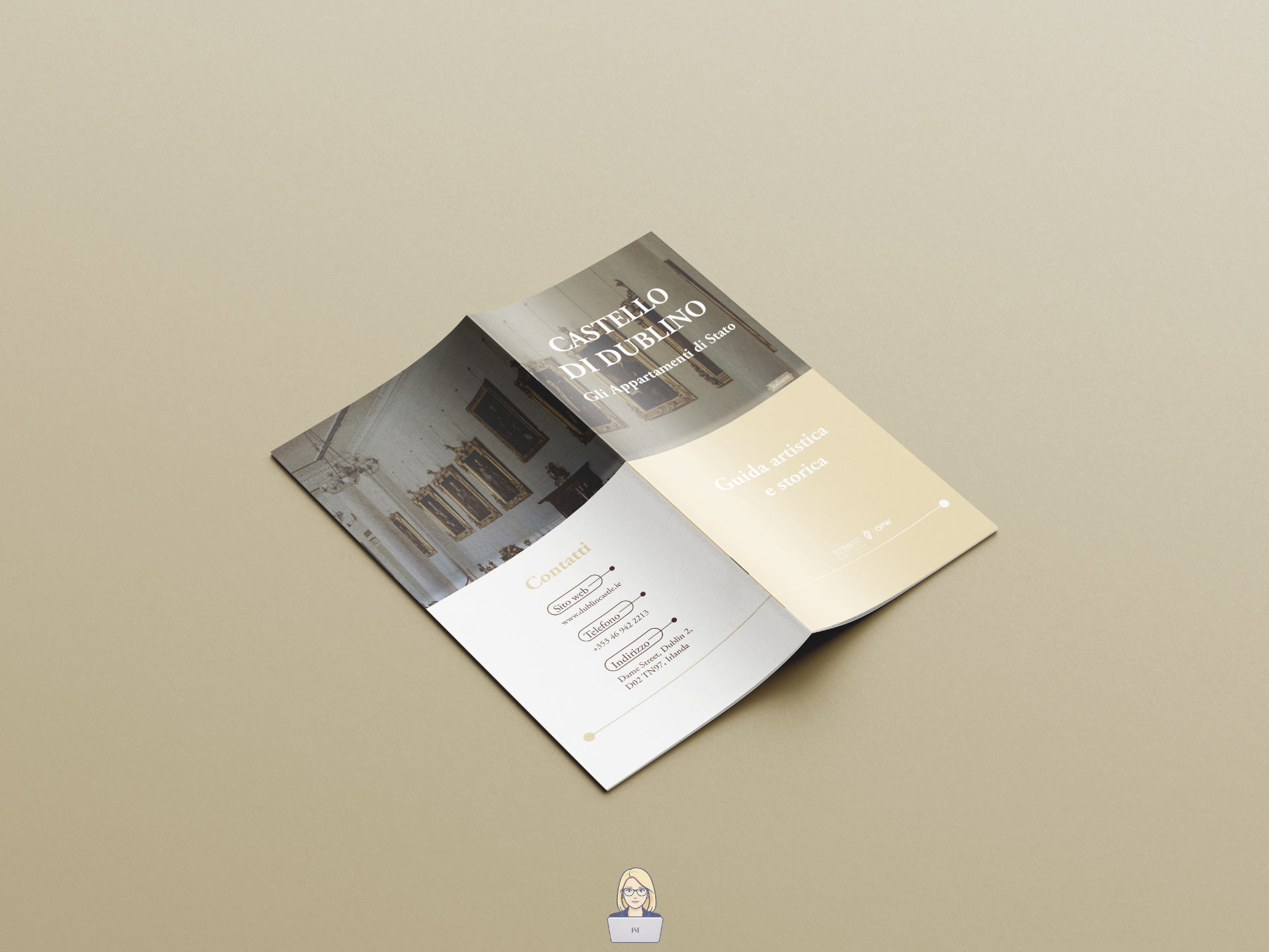 Progetto editoriale: layout e impaginazione della brochure ufficiale della Guida artistica e storica del Castello di Dublino.
